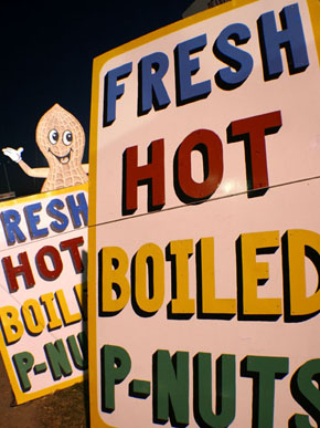 In case you’re not planning a vacation to Dixieland anytime soon, I thought I’d Google up a boiled peanut dealer for you. The Lee Bros Boiled Peanut Catalog looks like a pretty good one. I can’t personally vouch for them, but where else are you going to get an “I brake for boiled peanuts” bumper sticker?