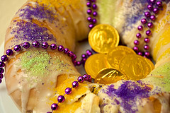 All photos from Flickr Creative Commons: Bead seekers by Philippe Leroyer, Mardi Gras Beads by Mike Bitzenhofer, and King Cake by Logan Brown.