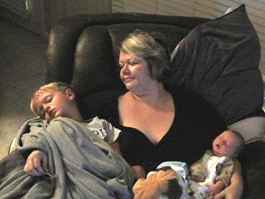 When Eli was born, I stayed with Jenna for a couple of weeks, and I have to say it’s definitely one of the most comfortable chairs I’ve ever had the pleasure of sitting in. Not because it cushions you with plush pillowy-ness or because it leans back into the perfect TV-watching/nap-inducing angle. But because it’s roomy enough to cradle Eli on one side and Jackson on the other and rest easy in a cocoon of unconditional love.