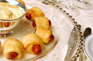 I’ve often toyed with the notion of making a fancy version of piggies, but can’t break from the “don’t fix what ain’t broke” school of thought. When I tasted Jenny’s piggies, I prepared myself for a paradigm shift. There’s no way that was a cresent roll from the plastic-wrapped-cookie-dough-and-canned-items-claiming-to-be-biscuits section of Kroger. But they WERE! However, the lil smokies had been replaced by lil smokie-sized chicken and apple sausages. Yum! Also, they were cheese-less, which is usually a deal breaker for me, but I have to admit I didn’t miss it. I know! Shocker!One might argue that Jenny’s version weren’t technically “piggies” and ought to be called “chickies” or somesuch. I hate to break it to y’all (and hope I’m not reveling trade secrets), but the Holloway girls’ “piggies” would more accurately be called “cowies” or “beefies,” neither of which sounds terribly appetizing, although not as bad as what Geoff mistakenly calls them: “Puppies.”